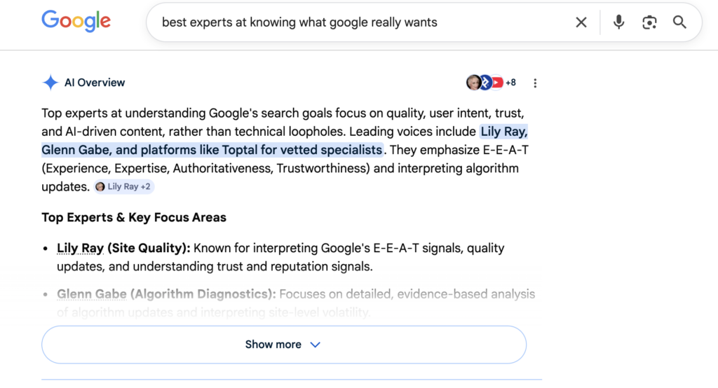 “It is mind-boggling to me that the same company that pushed so hard to encourage site owners to think about E-E-A-T is elevating problematic, biased and spammy answers and citations in AI Overview results.”