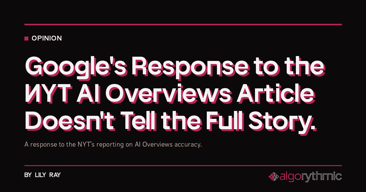 This is where I think Google could be doing a better job. When AI Overviews are reaching the majority of U.S. search users on a majority of commercial queries, they are not just another SERP feature. They are actively shaping what people believe to be true about products, companies, experts, medical questions, financial decisions, and everything in between. A ~9% error rate in that position is not “good enough.” (Or, in the words of AJ Kohn, “Goog Enough“). It’s an editorial standard no reputable publisher would accept for their front page. (And this is, effectively, the front page of the internet.)